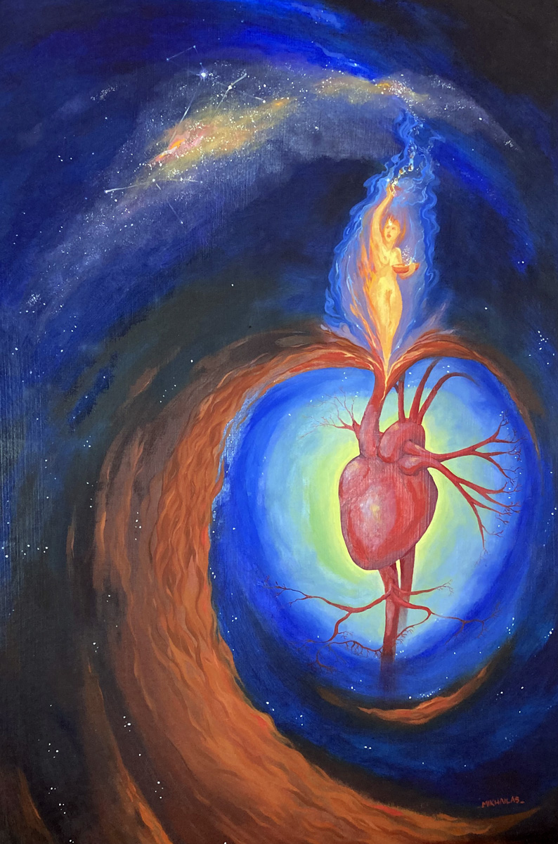 As a child, Maria knew she wanted to be an artist. Throughout her life, Maria’s artistic expression has paralleled her spiritual journey, leading her to create images inviting contemplation or meditation. Maria seeks to express the spiritual dimension in her painting. Her work now displays a dynamic union of traditional and process painting, seemingly effortlessly expressing her inner experiences.